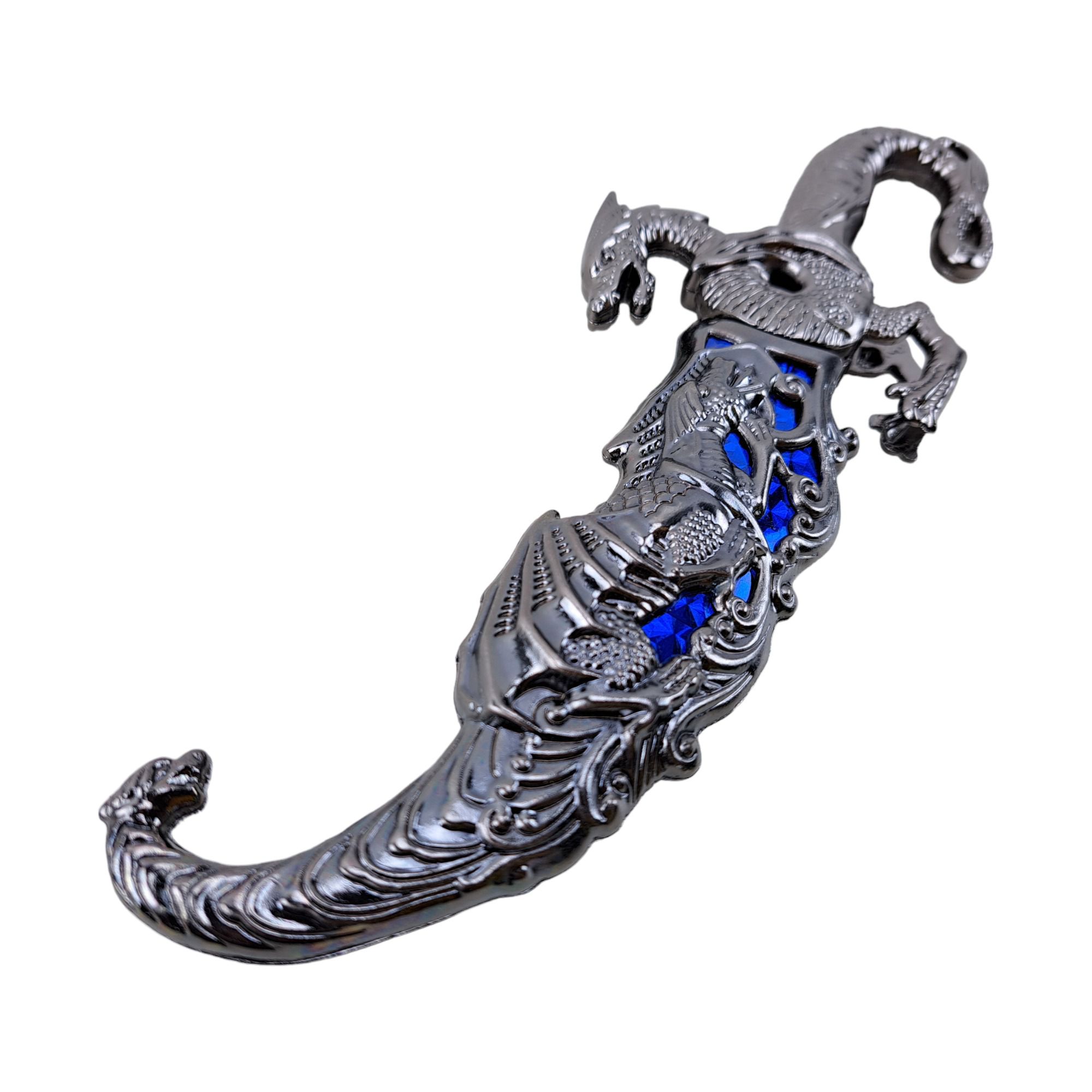 Mergulhe no fascínio medieval e nas lendas dos dragões com a Adaga Dragão Bainha Azul. Com um design impressionante e detalhes minuciosos, essa peça se destaca como um verdadeiro tesouro para colecionadores e entusiastas do universo fantástico. Seu punho de metal robusto proporciona imponência e autenticidade, enquanto sua lâmina de aço inoxidável reforça a durabilidade e a resistência.