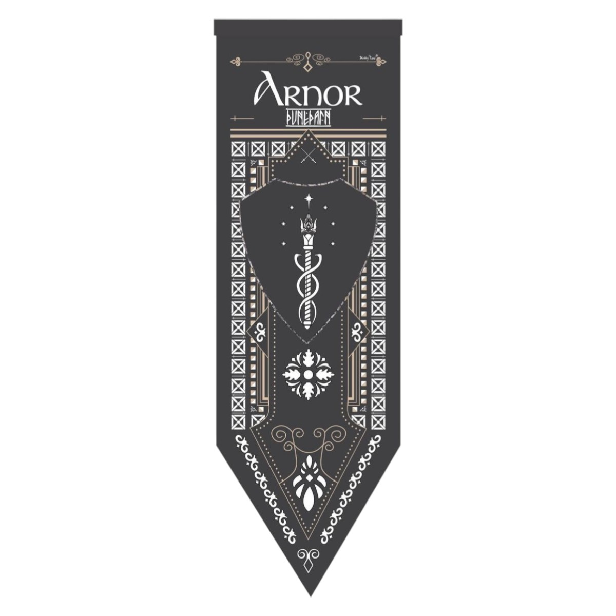 📜 Um brasão que ecoa glória e queda: Esta flâmula representa Arnor, o antigo reino dos Dúnedain no Norte da Terra-média. Fundado por Elendil após a queda de Númenor, Arnor simboliza nobreza, herança real e a resistência dos homens contra as trevas.