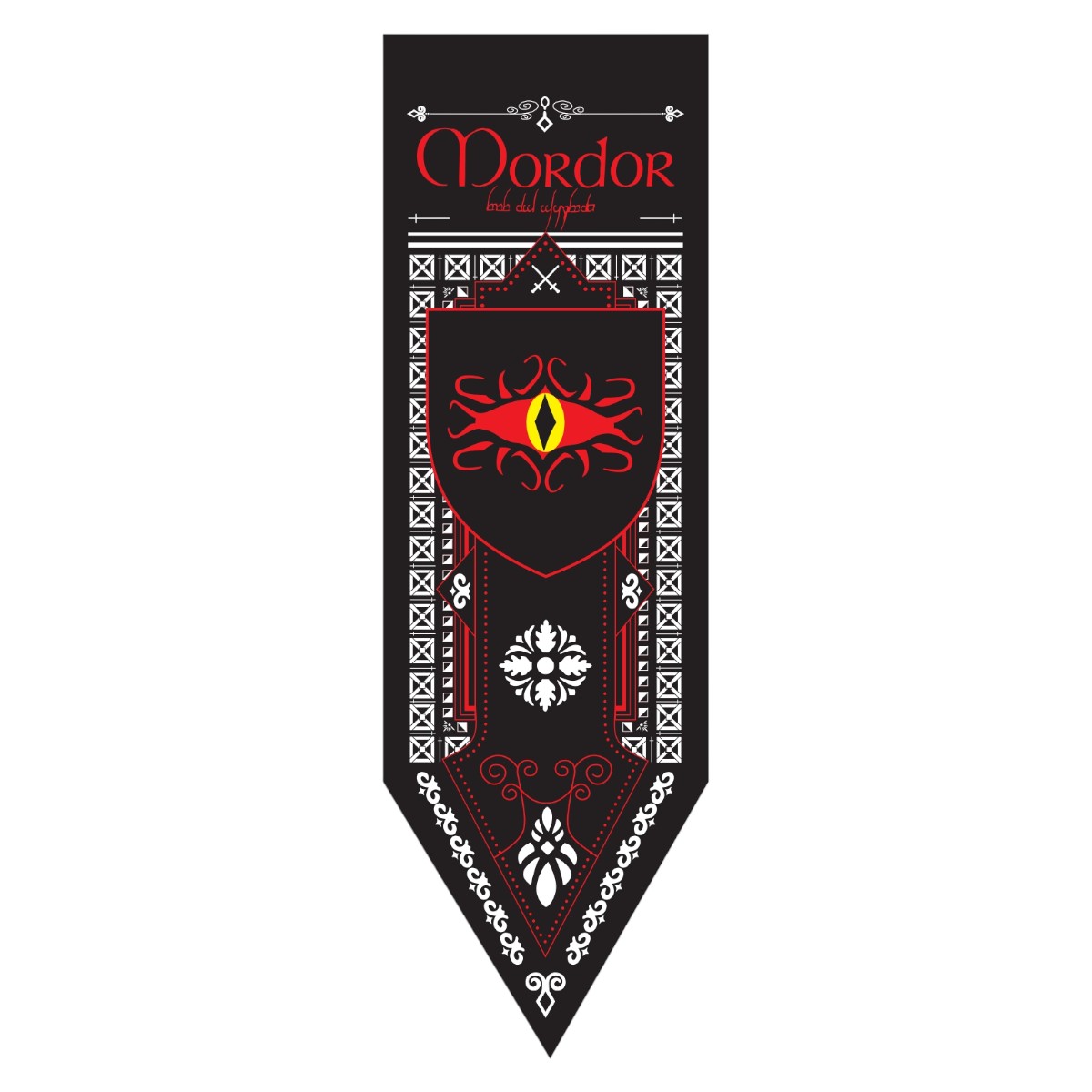 📜 Um símbolo do domínio das sombras: Esta flâmula representa Mordor, a terra dominada por Sauron e forjada em trevas. Com o Olho flamejante vigiando constantemente, Mordor é o coração da escuridão e da guerra na Terra-média.