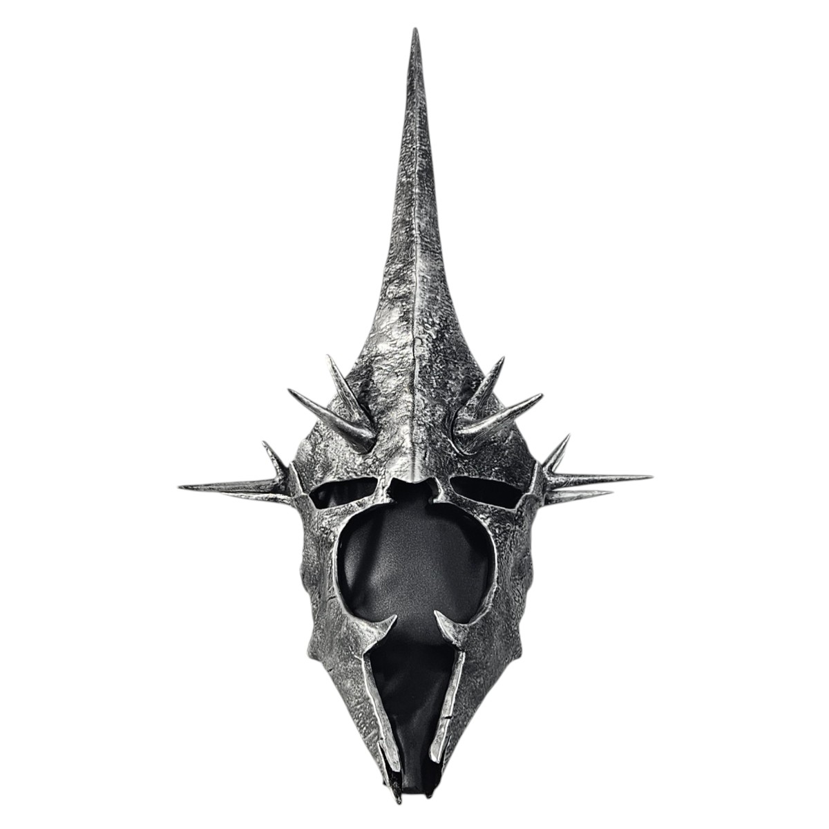 Com linhas agressivas, estrutura alongada e acabamento que remete ao metal envelhecido, o elmo reproduz a estética ameaçadora associada aos Nazgûl, também conhecidos como os espectros do anel. O resultado é uma peça de forte impacto visual, perfeita para colecionadores, fãs de Tolkien e apaixonados por decoração dark fantasy.