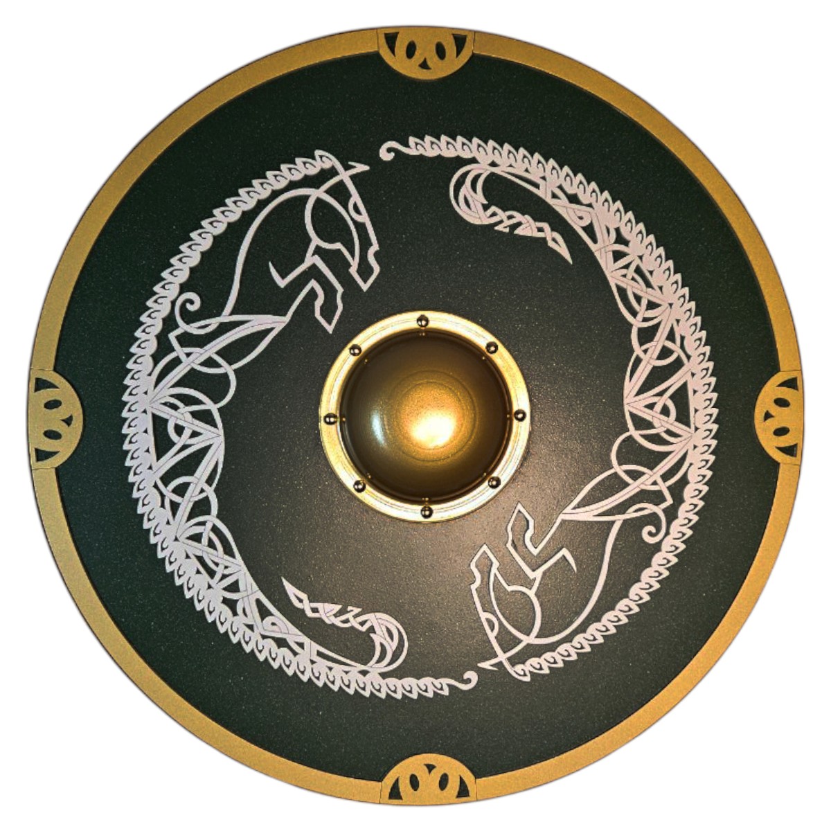 Construído em madeira e adornado com arte celta em alto-relevo, o escudo é um símbolo de nobreza que transcende o tempo. Seja no salão de um colecionador, nas costas de um herói em cosplay ou como presente digno de um fã devoto, esta peça exala poder e autenticidade.