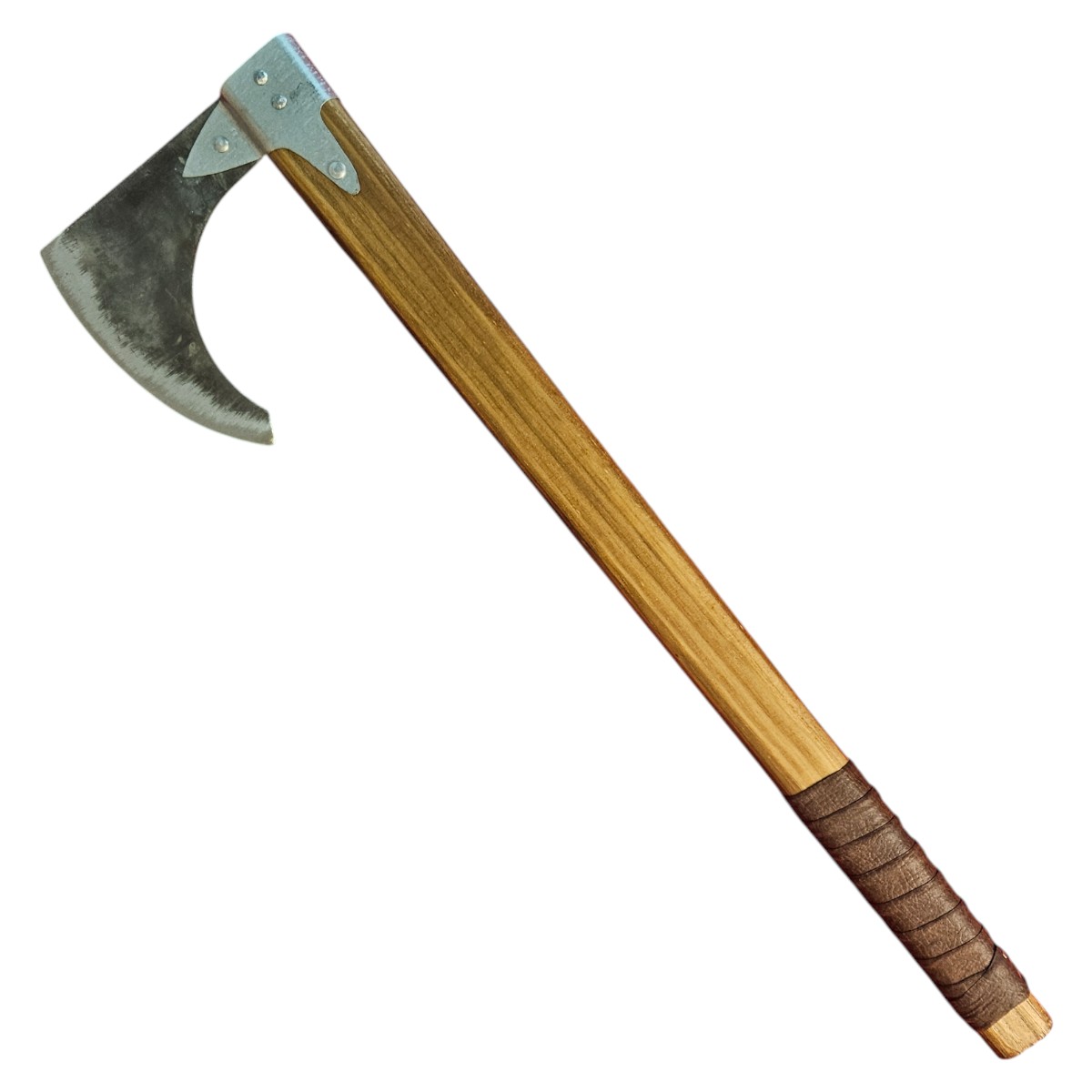 Uma obra de arte 100% artesanal, com um cabo de madeira e revestido com couro. Inspirado na cultura medieval, este machado decorativo é uma representação impressionante da maestria artesanal.