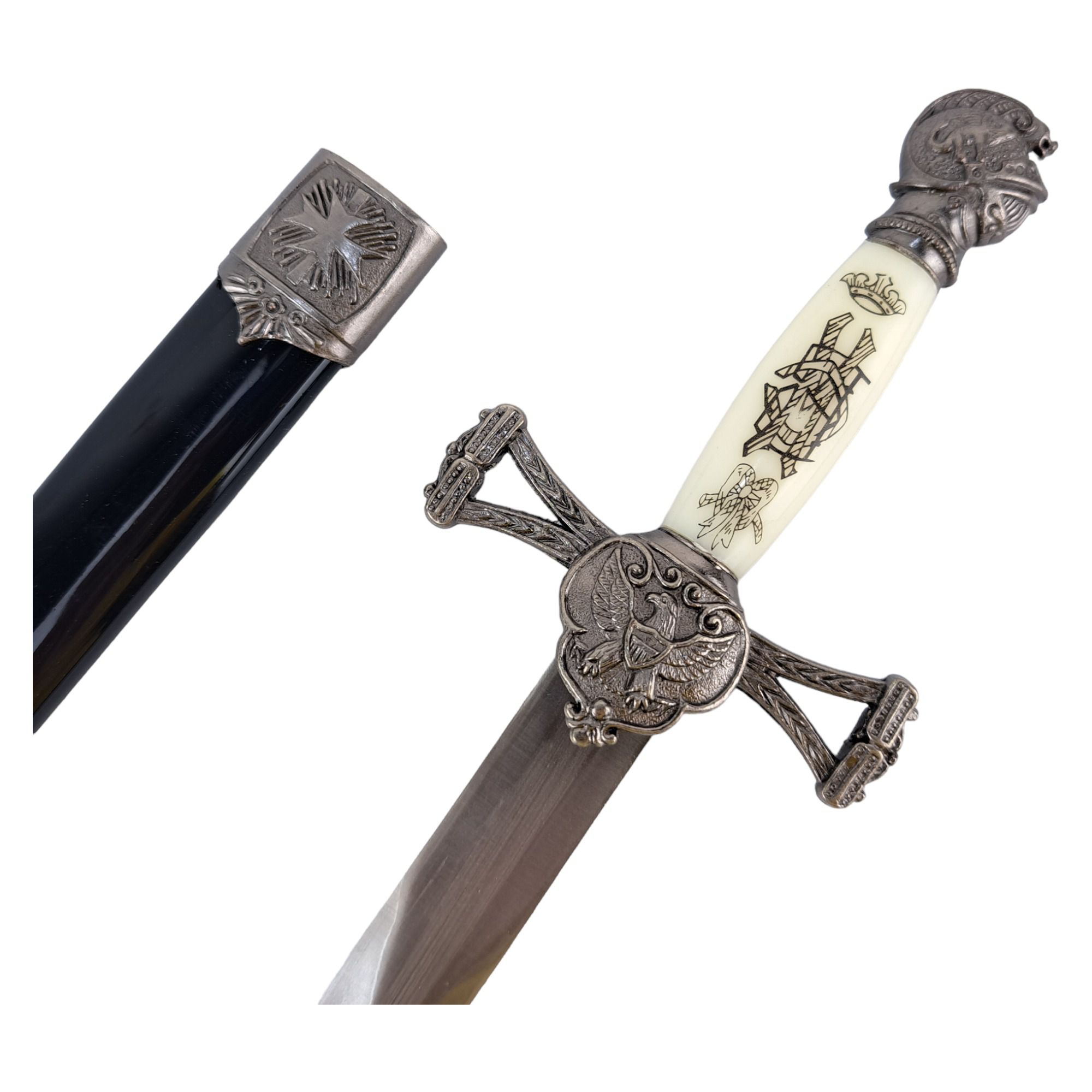 A Adaga Cavaleiro Templário Marfim é uma peça inspirada na tradição e na honra dos lendários Cavaleiros Templários. Com um cabo que imita marfim e uma bainha decorada, essa adaga apresenta um visual nobre e sofisticado, sendo perfeita para colecionadores, decoração temática ou cosplay.