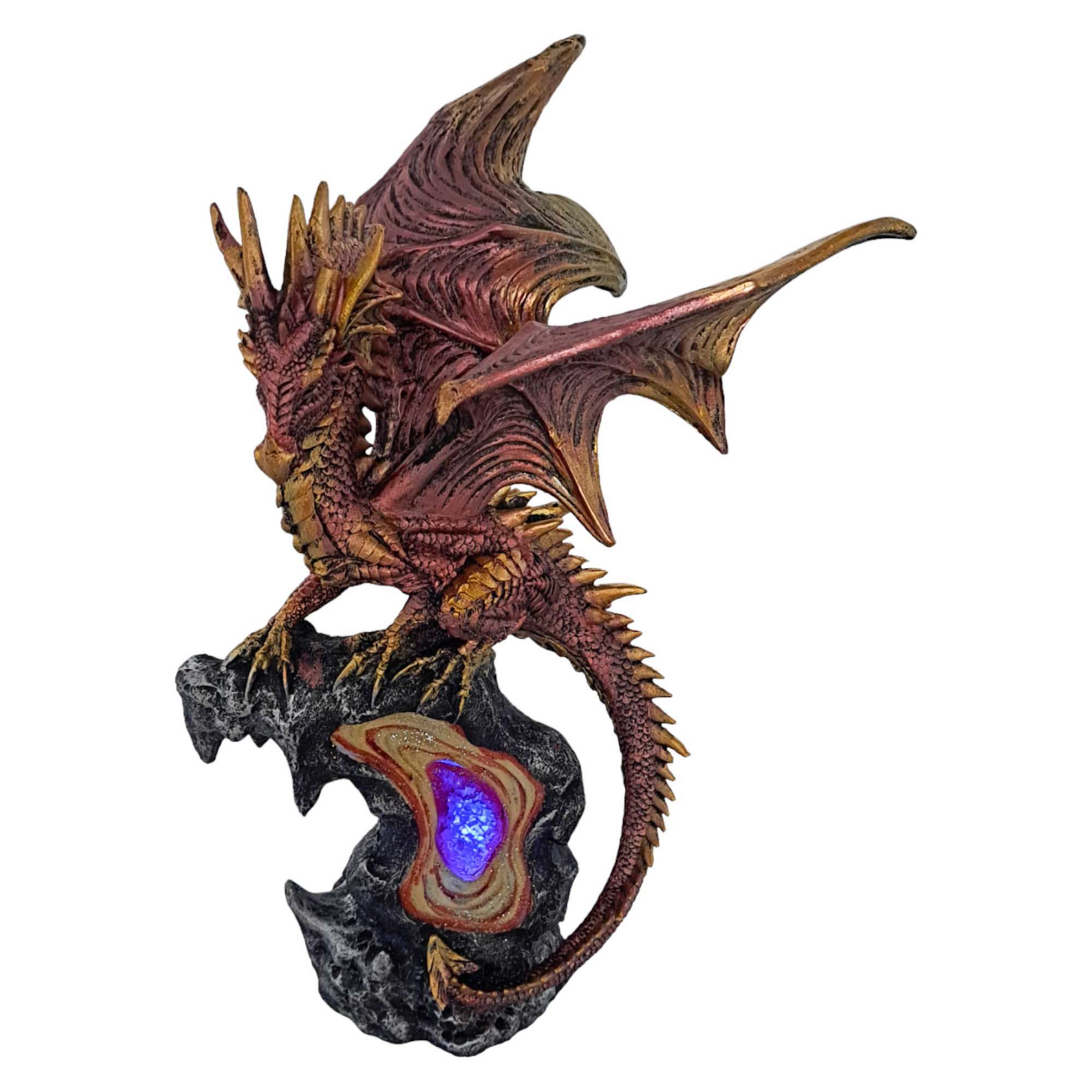 Uma escultura excepcional retrata um dragão emergindo da pedra, criando um cenário de conto de fadas. Seus LEDs emitem uma luz suave e mágica, com troca de cores aleatória, transformando qualquer ambiente em um reino encantado. Este enfeite se ajusta perfeitamente a qualquer espaço. Deixe a magia desse enfeite iluminar sua imaginação!