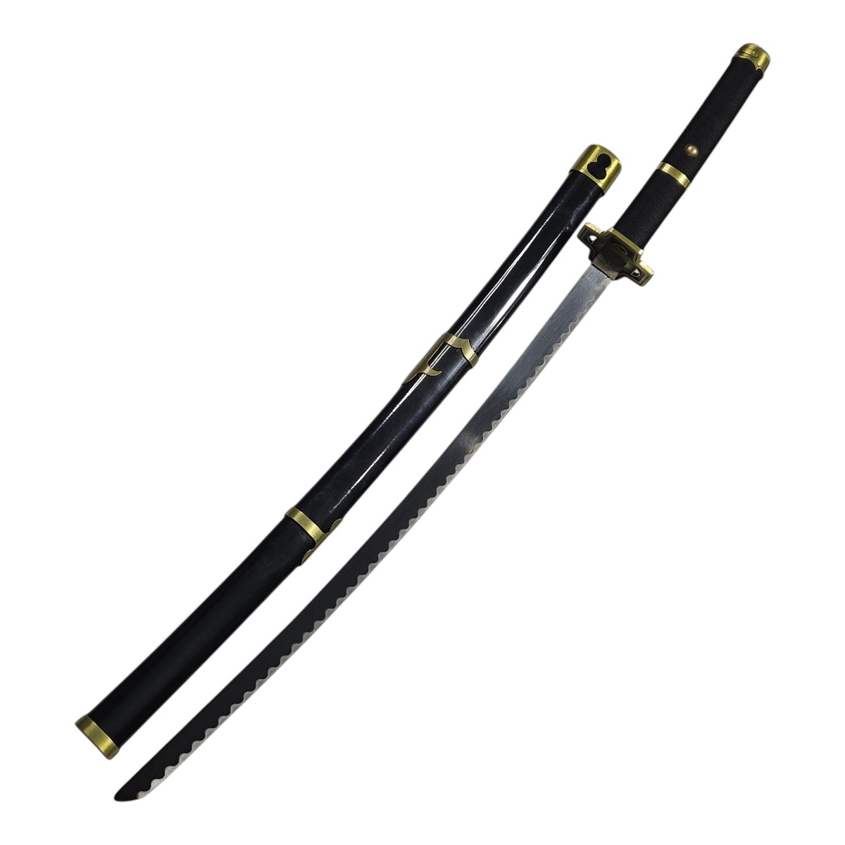Espada Katana do Roronoa Zoro, Contem uma bainha linda feita em madeira pintada de Preto brilhoso com detalhes em metal trazendo toda originalidade dos desenhos para sua casa ou fantasia, ideal para Cosplay.